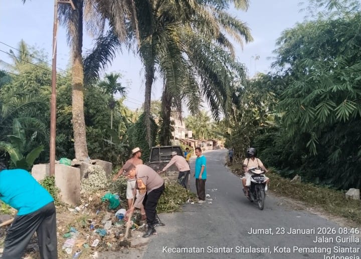 Pematangsiantar !!! Beritaterang.com –Polsek Siantar Martoba Polres Pematangsiantar melalui Bhabinkamtibmas Kelurahan Bah Sorma AIPDA Fadlan Fahmi mengikuti gotong royong massal di Jalan Pisang Kipas Kelurahan Bah Sorma Kecamatan Siantar Sitalasari Kota Pematangsiantar, pada hari Jumat ( 23 / 01 / 2026 ) pagi pukul 08.15 Wib.