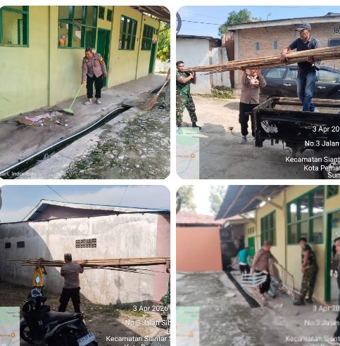 Pematangsiantar !!! Berita Terang.com -Polsek Siantar Martoba Polres Pematangsiantar melalui Bhabinkamtibmas Kelurahan Bah Sorma AIPDA Fadlan Fahmi mengikuti kegiatan gotong royong bersama di Masjid Nurul Huda Jalan Nurul Huda Blok III, Kelurahan Bah Sorma Kecamatan Siantar Sitalasari Kota Pematangsiantar, pada Jumat ( 03 / 04 / 2026 ) pagi sekira pukul 08.00 Wib.