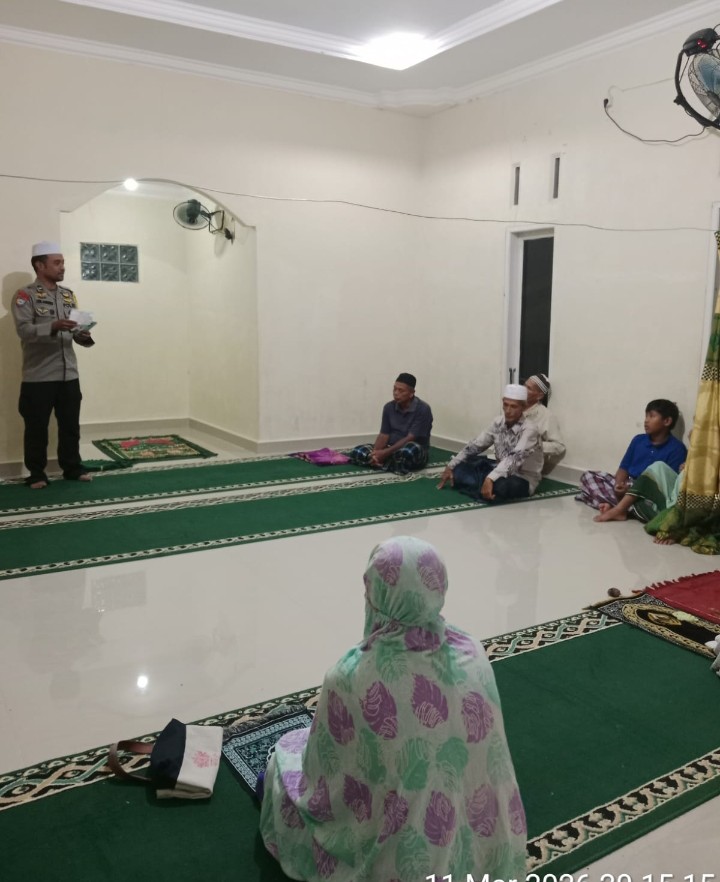Pematangsiantar !!! Berita Terang.com -Polsek Siantar Marihat Polres Pematangsiantar melalui Bhabinkamtibmas Kelurahan Pematang Marihat Aipda Asril Manurung hadir memberikan Tausyiah di Mesjid Al Falah Kampung Baru Marihat Sentral Kelurahan Pematang Marihat Kecamatan Siantar Marimbun Kota Pematangsiantar, pada Rabu ( 11 / 03 / 2026 ) malam pukul 20.00 Wib.