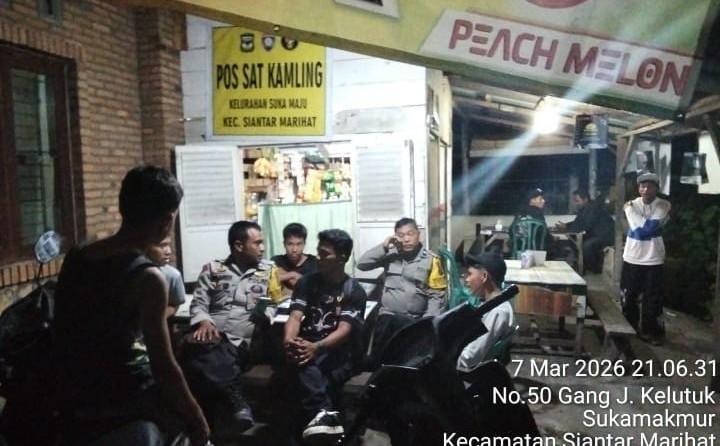 Pematangsiantar !!! Berita Terang.com -Polsek Siantar Marihat Polres Pematangsiantar melalui Bhabinkamtibmas melaksanakan Saling (Sapa Siskamling) di Pos Kamling Jalan Durian Kelurahan Sukamaju Kecamatan Siantar Marihat Kota Pematangsiantar, pada Sabtu ( 07 / 03 / 2026 ) malam sekira pukul 21.00 Wib.