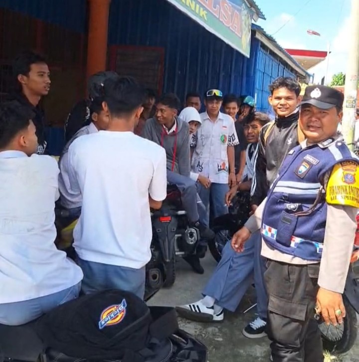 Pematangsiantar !!! Berita Terang.com -Polsek Siantar Marihat Polres Pematangsiantar melalui Bhabinkamtibmas Kelurahan Simarimbun Bripka Johannes C. Siregar sambangi pelajar SM yang mangkal di Emperan Bakso Salsa Jalan Raya ke Sidamanik Kelurahan Simarimbun Kecamatan Siantar Marimbun Kota Pematangsiantar, pada Kamis ( 16 / 04 / 2026 ) pagi sekira pukul 10.00 Wib.