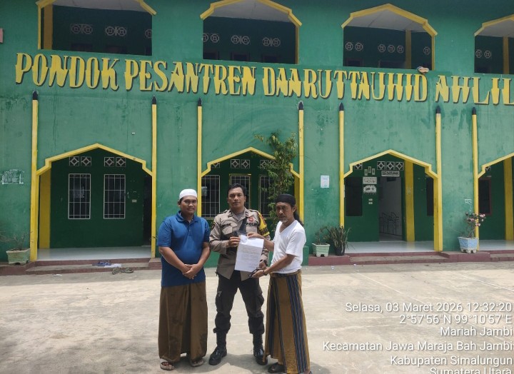 Simalungun !!!!! Berita Terang.com – Jelang Ramadan 1447 H, Bhabinkamtibmas Polsek Tanah Jawa AIPTU R. Sinurat menyambangi Pondok Pesantren Daarul Tauhid Ahlillah di Huta Jambi, Nagori Mariah Jambi, Kecamatan Jawa Maraja Bah Jambi pada Selasa siang ( 03 / 03 / 2026 ).