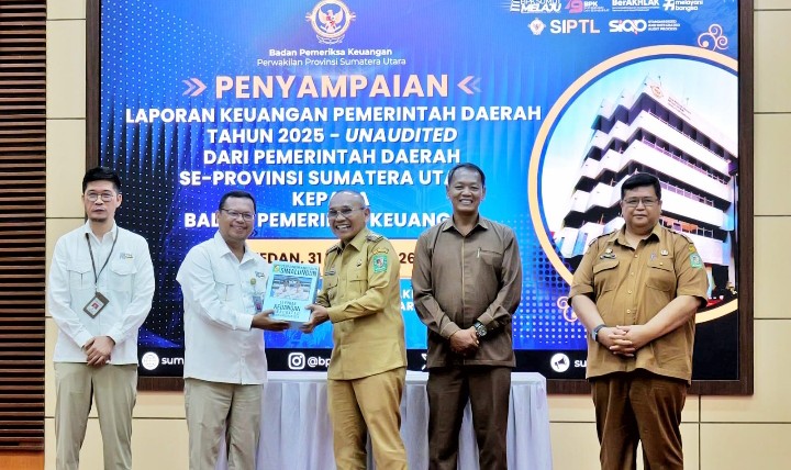 Acara penyerahan berlangsung di Auditorium BPK Perwakilan Provinsi Sumatera Utara, Medan, Selasa ( 31 / 03 / 2026 ), yang di hadiri langsung Kepala BPK Perwakilan Prov. Sumut, Paula Henry Simatupang.