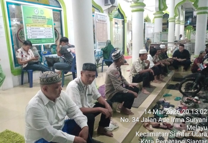 Pematangsiantar !!! Berita Terang.com -Wakapolsek Siantar Utara IPTU Irpansyah bersama personil beragama Muslim melaksanakan Sholat Isya dan Sholat Tarawih berjamaah di Mesjid Al-Hanif Jalan Ade Irma Suryani, Kelurahan Melayu Kecamatan Siantar Utara Kota Pematangsiantar, pada Sabtu ( 14 / 03 / 2026 ) malam sekira pukul 20.00 Wib.