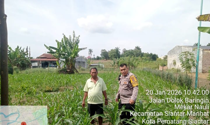 Pematangsiantar !!! Beritaterang.com –Polsek Siantar Timur Polres Pematangsianțar melalui Bhabinkamtibmas Kelurahan Tomuan AIPTU Okto Sihole sambangi ladang jagung warga binaan Bapak Marlon Simamora di Jalan Dolok Baringin Kelurahan Mekar Nauli Kecamatan Siantar Marihat Kota Pematangsiantar, pada hari Selasa ( 20 / 01 / 2026 ) pagi pukul 10.00 Wib.