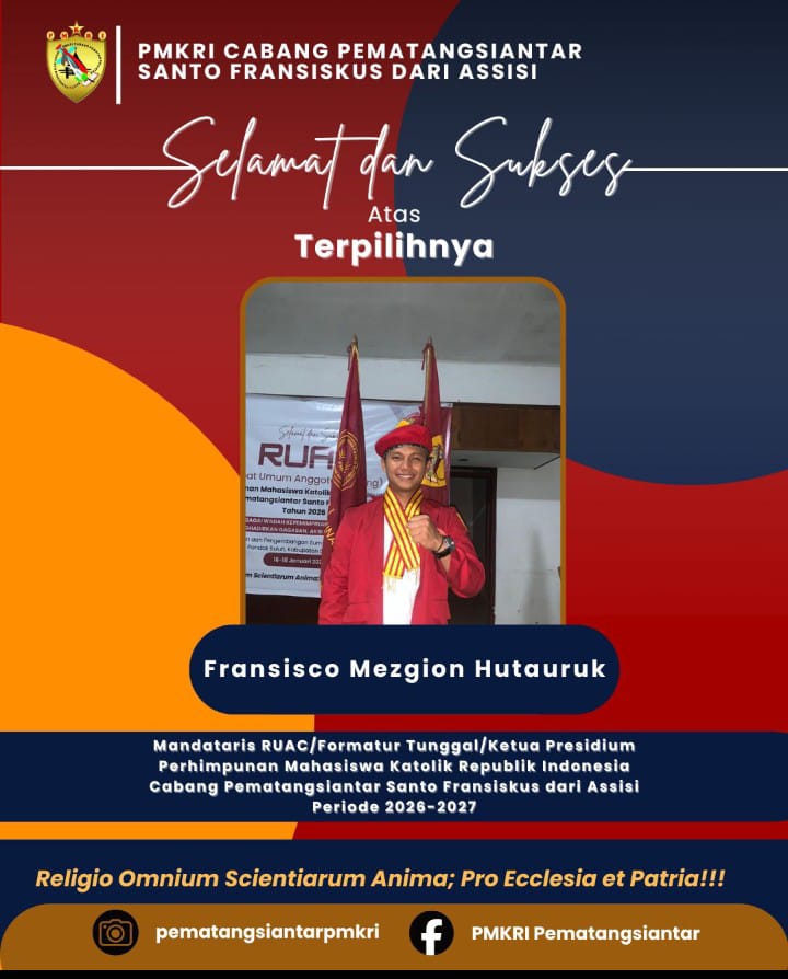Simalungun !!!!! Beritaterang.com -Fransisco Mezgion Hutauruk terpilih menahkodai Perhimpunan Mahasiswa Katolik (PMKRI) Cabang Pematangsiantar dalam Rapat Umum Anggota Cabang (RUAC) yang dilaksanakan pada 16-18 Januari 2026.