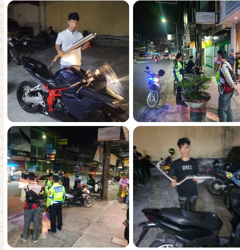 Selama kegiatan patroli tersebut Timsus Dayok Mirah lakukan penindakan secara humanis terhadap delapan sepedamotor menggunakan knalpot brong. ( TB ).