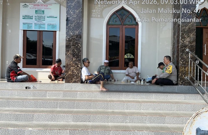 Pematangsiantar !!! Berita Terang.com -Polsek Siantar Barat Polres Pematangsiantar melalui Bhabinkamtibmas Kelurahan Bantan AIPTU Rayendra P. Damanik melaksanakan sambang kamtibmas di Mesjid Dakwah Jalan Jawa, Kelurahan Bantan, Kecamatan Siantar Barat Kota Pematangsiantar, pada Jumat ( 03 / 04 / 2026 ) pagi sekira pukul 09.00 Wib.