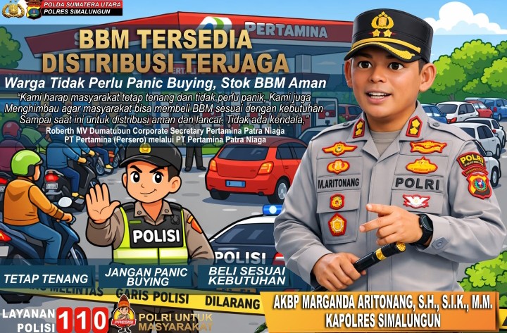 “Bapak Kapolres menghimbau seluruh masyarakat Kabupaten Simalungun untuk tidak panik dan tidak melakukan panic buying. Stok BBM tersedia dan distribusi terjaga dengan baik. Masyarakat cukup membeli sesuai kebutuhan, tidak perlu berlebihan”, ujar AKP Verry Purba dengan tegas.