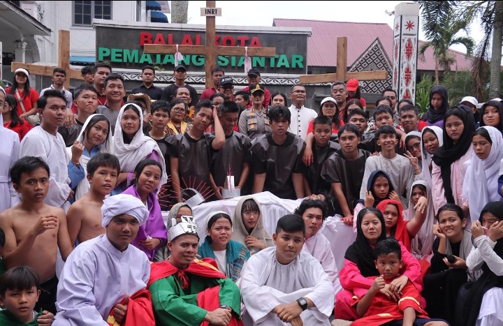 Tidak hanya melakukan pengamanan, Kapolres Pematangsiantar juga ikut ambil bagian dalam prosesi, termasuk dalam simbolisasi “pikul salib” serta penyerahan kain putih dengan gambar Yesus dalam rangkai jalan Salib, sebagai bentuk penghormatan dan toleransi terhadap pelaksanaan ibadah umat Kristiani.