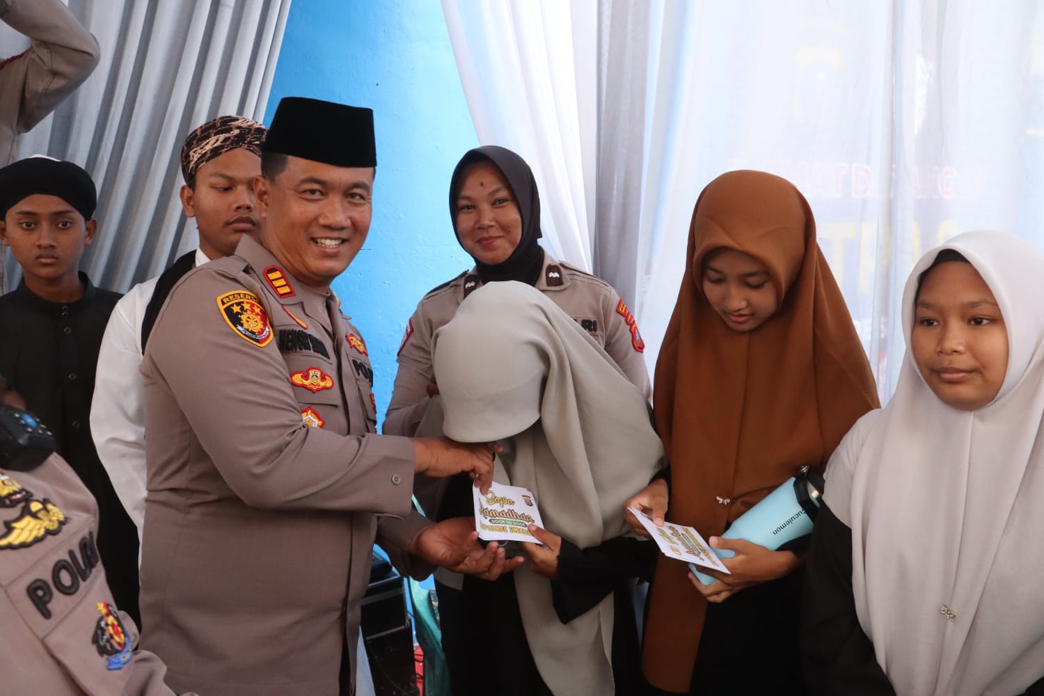 “Ustad bicara tentang pentingnya menjaga anak yatim. Anak-anak dari Bangun mendengarkan dengan sangat serius. Ini adalah pembelajaran spiritual yang sangat berharga”, kata Kapolsek.
