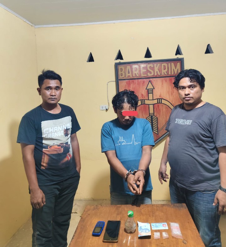 Sekitar pukul 20.30 Wib, tim Reskrim mendatangi salah satu rumah warga yang diduga tempat penyalahgunaan narkotika. “Komitmen kami diuji saat tersangka yang licin ini mencoba melarikan diri. Begitu melihat kami datang, tersangka langsung lari menuju perladangan sambil membuang barang bukti berupa bong dan kaca pirex yang berisi sabu”, ungkap Kanit Reskrim Roy.