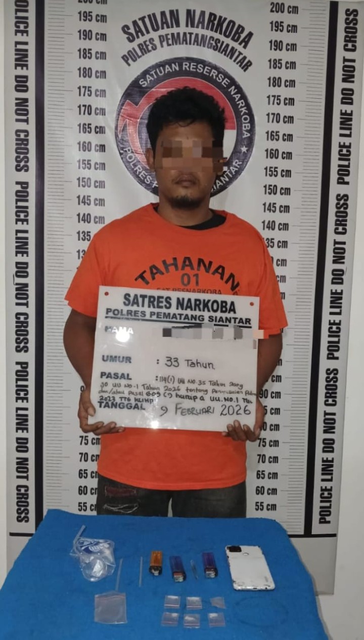 Pematangsiantar !!! Berita Terang.com -Satuan Reserse Narkoba Polres Pematangsiantar berhasil mengungkap kepemilikan 6 paket narkotika jenis sabu di Jalan Patuan Anggi Gang Ciput Kelurahan Pardomuan Kecamatan Siantar Timur Kota Pematangsiantar, pada Senin ( 09 / 02 / 2026 ) sore sekira pukul 17.00 Wib.