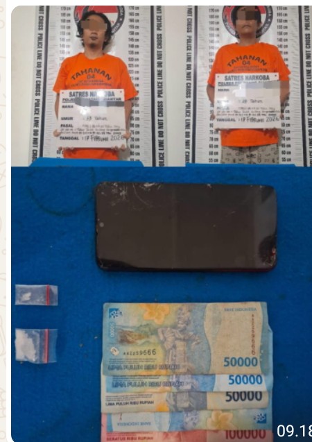 “MVW dan AD sudah ditahan guna diproses sesuai Pasal 114 (1) UU No. 35 Tahun 2009 Tentang Narkotika dan/atau Pasal 609 ayat (1) huruf a UU No. 1 Tahun 2023 tentang KUHP Jo UU No. 1 Tahun 2026 tentang Penyesuaian Pidana”, Pungkas AKP Irwanta. ( TB ).