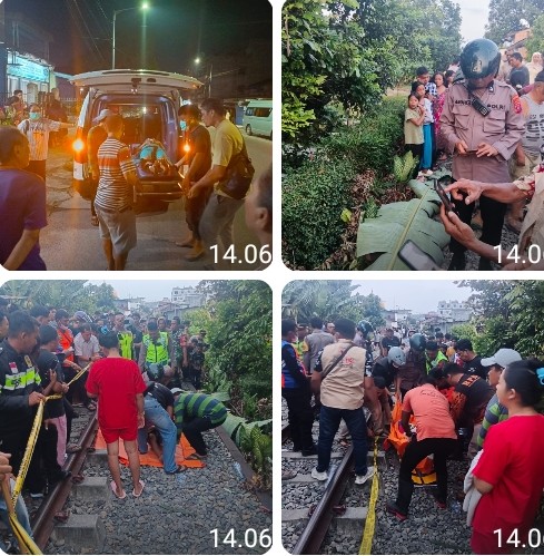 Pematangsiantar !!! Berita Terang.com -Polres Pematangsiantar melalui personil piket Polsek Siantar Timur dan Tim Inafis Satuan Reskrim respon cepat pengecekan TKP dan evakuasi korban tertabrak kereta api di rel lintasan Kereta Api PJKA jalan Tongkol ujung Kelurahan Pardomuan Kecamatan Siantar Timur, Kota Pematangsiantar, pada Minggu ( 22 / 03 / 2026 ) sore pukul 16.57 Wib.