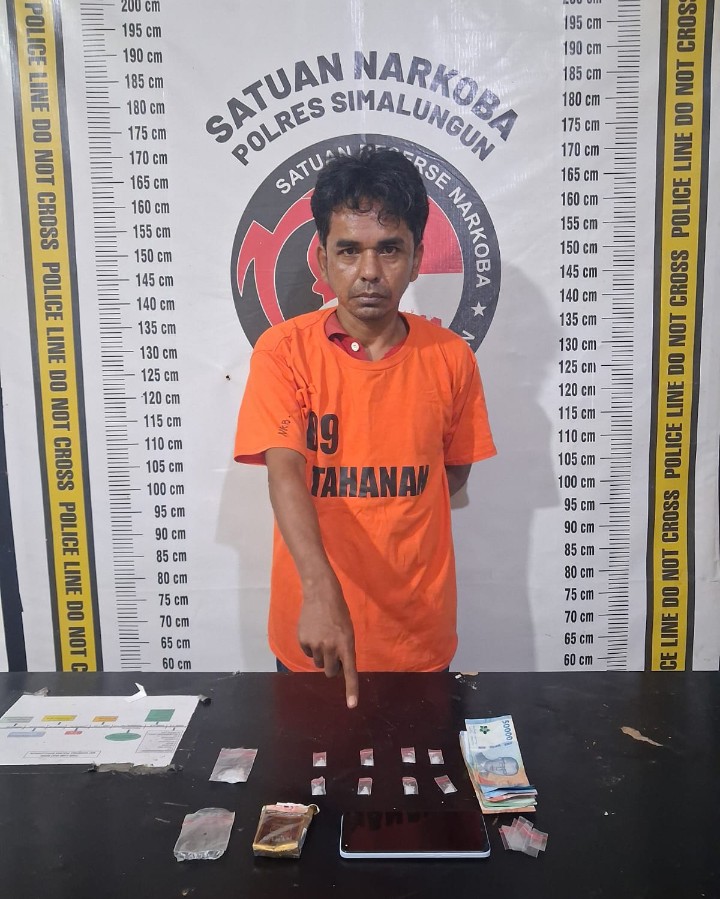 Seorang pria dewasa berinisial D.F.H, 45 tahun, berhasil diringkus oleh personil Sat Narkoba Polres Simalungun atas dugaan tindak pidana kepemilikan dan peredaran narkotika jenis sabu di Kampung Dalam, Kecamatan Tanah Jawa, Kabupaten Simalungun, pada hari Selasa ( 31 / 03 / 2026 ), sekira pukul 16.30 Wib.