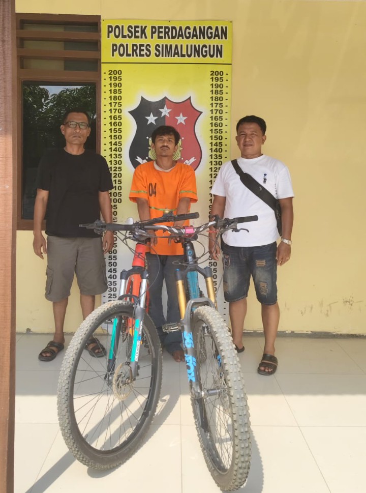 “Unit Reskrim Polsek Perdagangan telah berhasil mengamankan satu orang tersangka berinisial Tedy Fradana Purba dalam kasus pencurian dua unit sepeda gunung senilai puluhan juta rupiah”, ujar AKP Verry Purba.