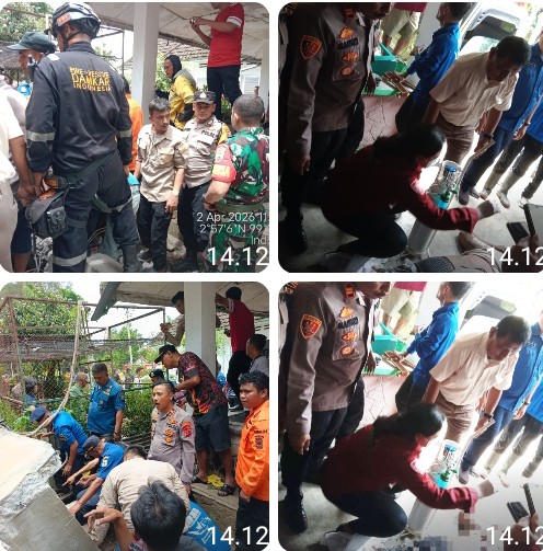 Pematangsiantar !!! Berita Terang.com -Kapolseķ Siantar Barat IPTU Raja Kaya Haloho, SH, MH pimpin langsung pengecekan TKP dan evakuasi seorang pekerja tertimpa reruntuhan material bangunan di Jalan Simbolon Teladan Kecamatan Siantar Barat Kota Pematangsianțar, Kamis ( 02 / 04 / 2026 ) siang sekira pukul 11.00 Wib.