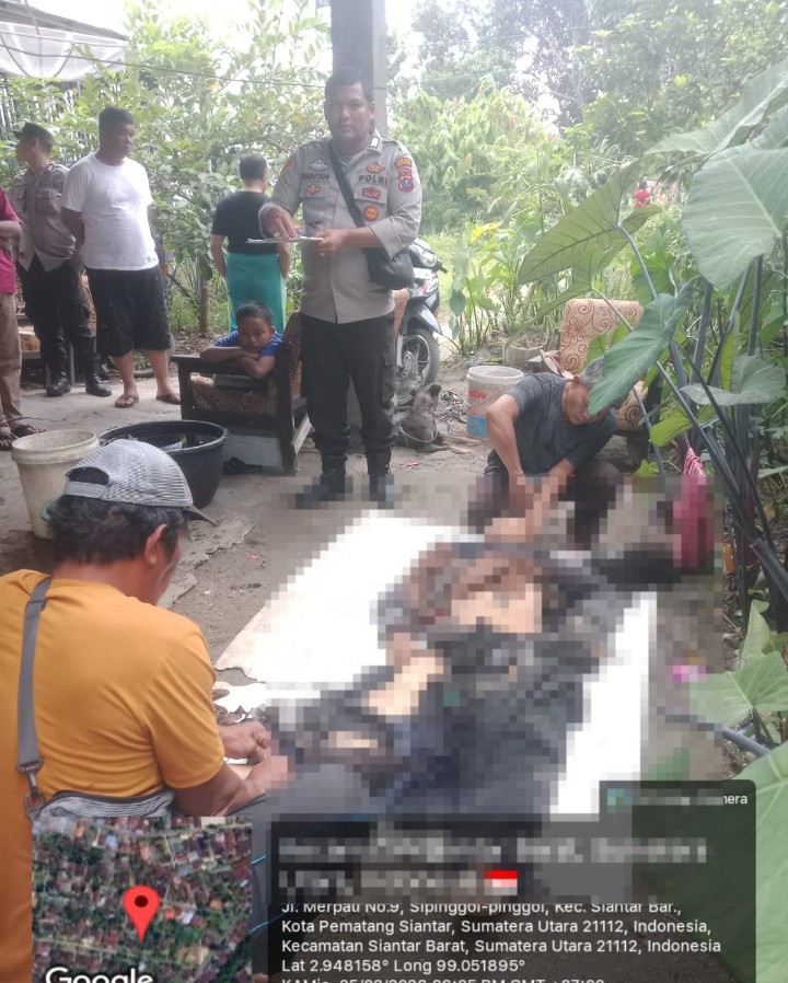 Setiba di TKP, personil piket menemukan jenajah korban sudah dibawa warga setempat ke rumah adik kandung korban MHS yang beralamat di Jalan Merpati Kelurahan Sipinggol pinggol Kecamatan Siantar Barat.