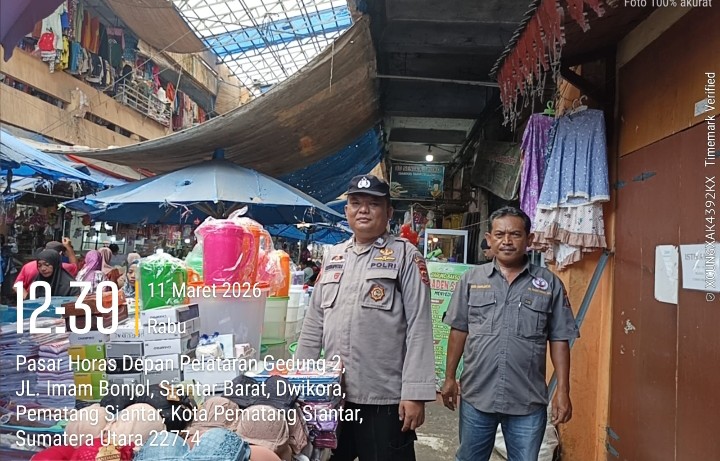 Pematangsiantar !!! Berita Terang.com -Polsek Siantar Barat Polres Pematangsiantar melalui Kasub Sekor Aiptu Edi Syahputra SH melaksanakan patroli jalan kaki pada sore hari diseputaran Pasar Horas Kelurahan Dwikora Kecamatan Siantar Barat, Kota Pematangsiantar, pada Rabu ( 11 / 11 / 2026 ) siang pukul 11.00 Wib.