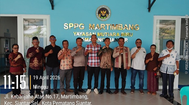 Pematangsiantar !!! Berita Terang.com -Kapolsek Siantar Selatan IPTU Suhaira Marbun, SH diwakili Bhabinkamtibmas Kelurahan Kristen BRIPKA Swandi menghadiri pembukaan Satuan Pelayanan Pemenuhan Gizi (SPPG) Martimbang yang terletak di Jalan Kabanjahe Kelurahan Martimbang Kecamatan Siantar Selatan Kota Pematangsiantar, pada Minggu ( 19 / 04 / 2026 ) siang sekira pukul 11.45 Wib.