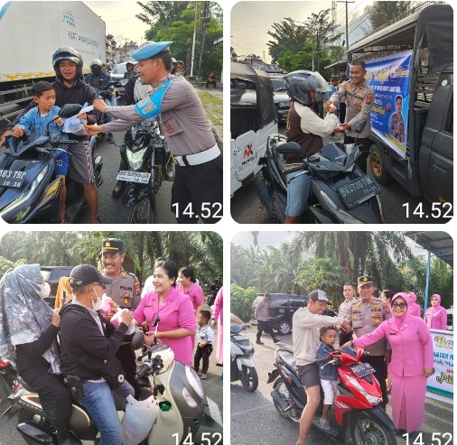 Sementara itu Polsek Siantar Martoba berbagi takji kepada masyarakat pengendara pengguna jalan yang melintas didepan Mako Polsek Siantar Martoba, Jalan Pdt. J. Wismar Saragih.