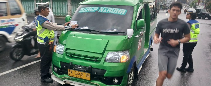 Sat Lantas Polres Pematangsiantar Gencarkan Sosialisasi Tertib Berlalu Lintas di Jalan Sutomo.
