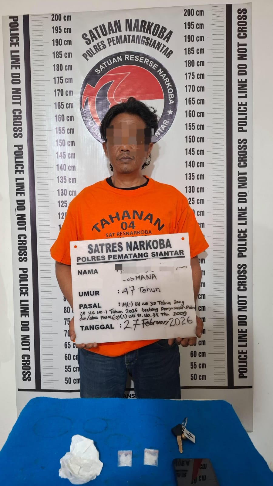 Pematangsiantar !!! Berita Terang.com -Satuan Reserse Narkoba Polres Pematangsiantar berhasil mengungkap kepemilikan narkotika jenis sabu berat bruto 2,18 gram dipinggir Jalan Adam Malik Kelurahan Timbang galung Kecamatan Siantar Barat Kota Pematangsiantar, pada Jumat ( 27 / 02 / 2026 ) malam sekira pukul 20.00 Wib.