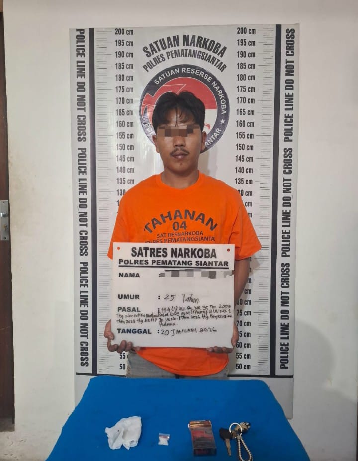Satuan Reserse Narkoba berhasil mengungkap kasus kepemilikan narkotika jenis sabu dan mengamankan seorang pemuda berusia 25 tahun di kawasan Jalan Sisingamangaraja, Kecamatan Siantar Utara, Selasa ( 20 / 01 / 2026 ) sore.