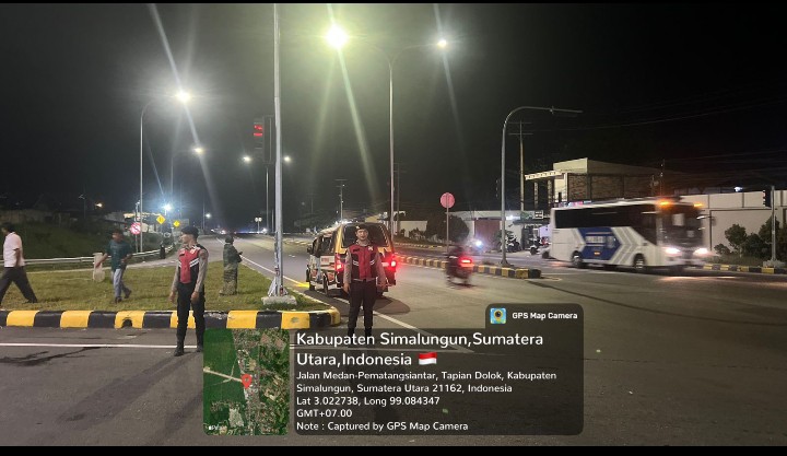 Rute yang mereka lalui bukan sembarangan. Tim bergerak menyusuri Jalan Medan, melintas ke Simpang Tol Sinaksak, masuk ke area Gerbang Tol Sinaksak, hingga akhirnya singgah di Masjid Al-Mahmudiyah, Jalan Medan — sebuah rute yang mencakup titik-titik strategis sekaligus rawan gangguan keamanan di wilayah Simalungun.