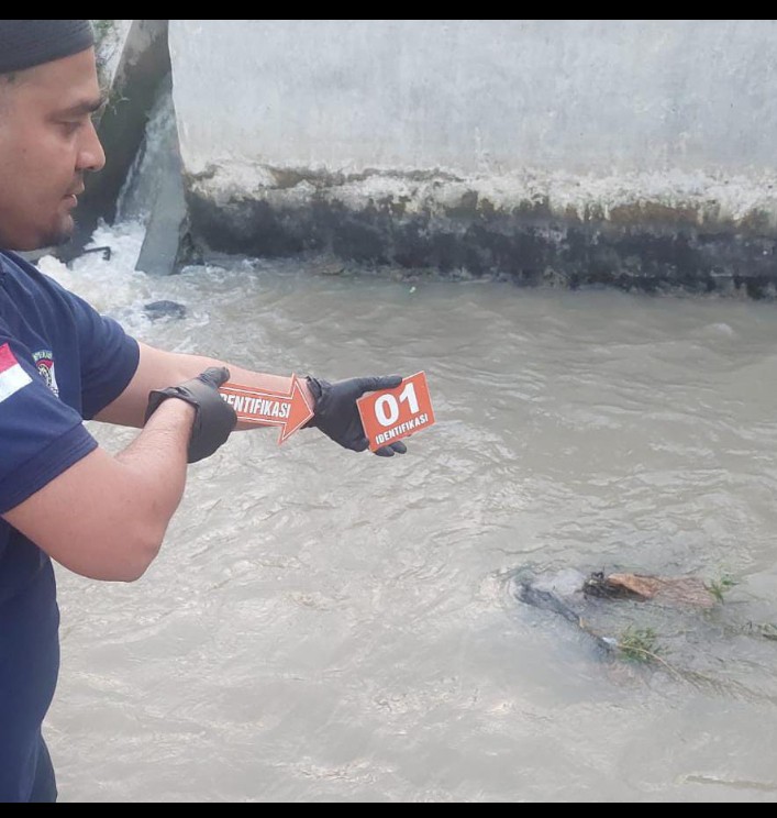 Sesampainya di TKP, petugas mendapati jenazah sudah diangkat oleh warga dan diletakkan di pinggir bondar.
