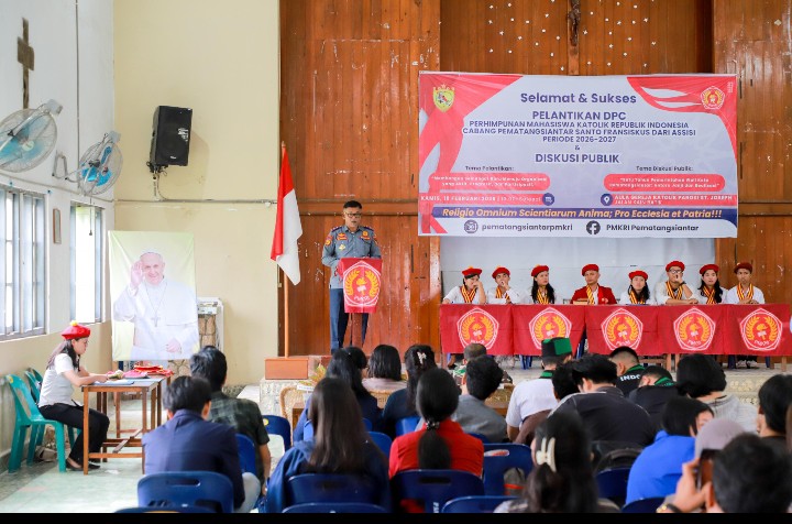 Pematangsiantar !!! Berita Terang. com – Wali Kota Pematangsiantar Wesly Silalahi, SH, MKn diwakili Kepala Dinas Perhubungan (Kadishub) Drs. Daniel Hamonangan Siregar menghadiri Pelantikan Dewan Pengurus Cabang (DPC) Perhimpunan Mahasiswa Katolik Republik Indonesia (PMKRI) Kota Pematangsiantar Santo Fransiskus dari Assisi Periode 2026 – 2027.