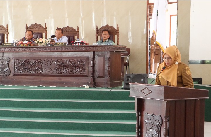 Pada kesempatan ini, Wesly menyampaikan LKPJ memuat data umum daerah, perubahan penjabaran APBD, dan capaian kinerja seluruh OPD.