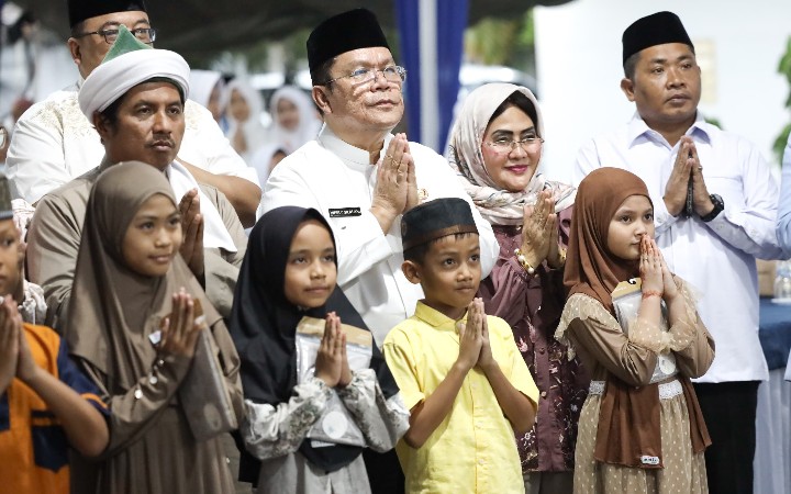 Pematangsiantar !!! Berita Terang.com – Wali Kota Pematangsiantar Wesly Silalahi, SH, MKn bersama Ketua TP PKK Ny Liswati Sinaga mengundang anak – anak yatim untuk berbuka puasa bersama.